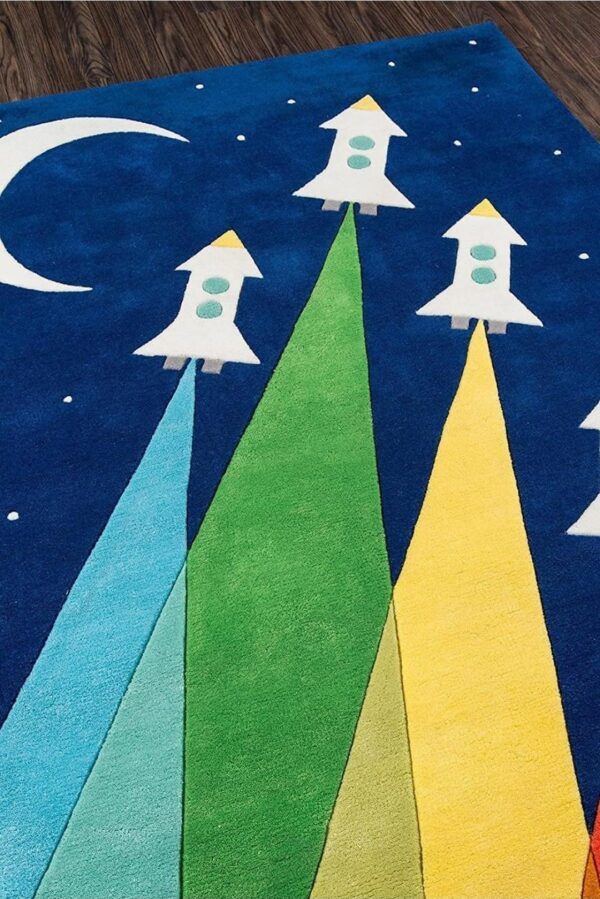 The Space Rocket Rug is more than décor—it’s an imaginative playground. Its bold colors and whimsical design encourage learning and play, while the hand‑tufted wool construction ensures safety and softness underfoot. Perfect for parents who want a rug that combines style, function, and fun, this piece makes any room feel brighter and more engaging.